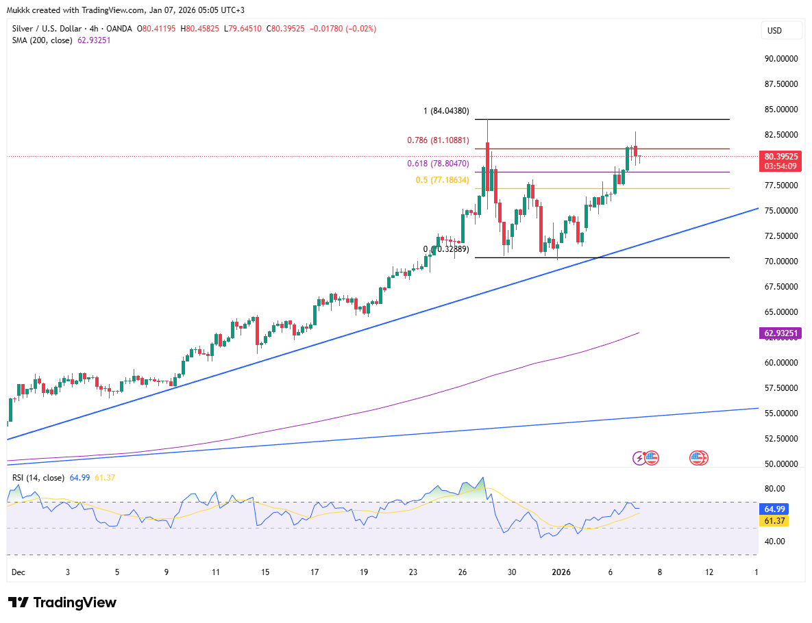 Silver prices edged lower to $80.35 on Wednesday as traders locked in profits following a surge to record highs. The pullback comes ahead of high impact US data, including the ISM Services PMI and Friday’s employment report. However, losses remain cushioned by expectations of 2026 Fed rate cuts and safe haven demand. Tensions persist following the US operation in Venezuela, keeping investors cautious as they weigh geopolitical risks against potential shifts in US monetary policy.