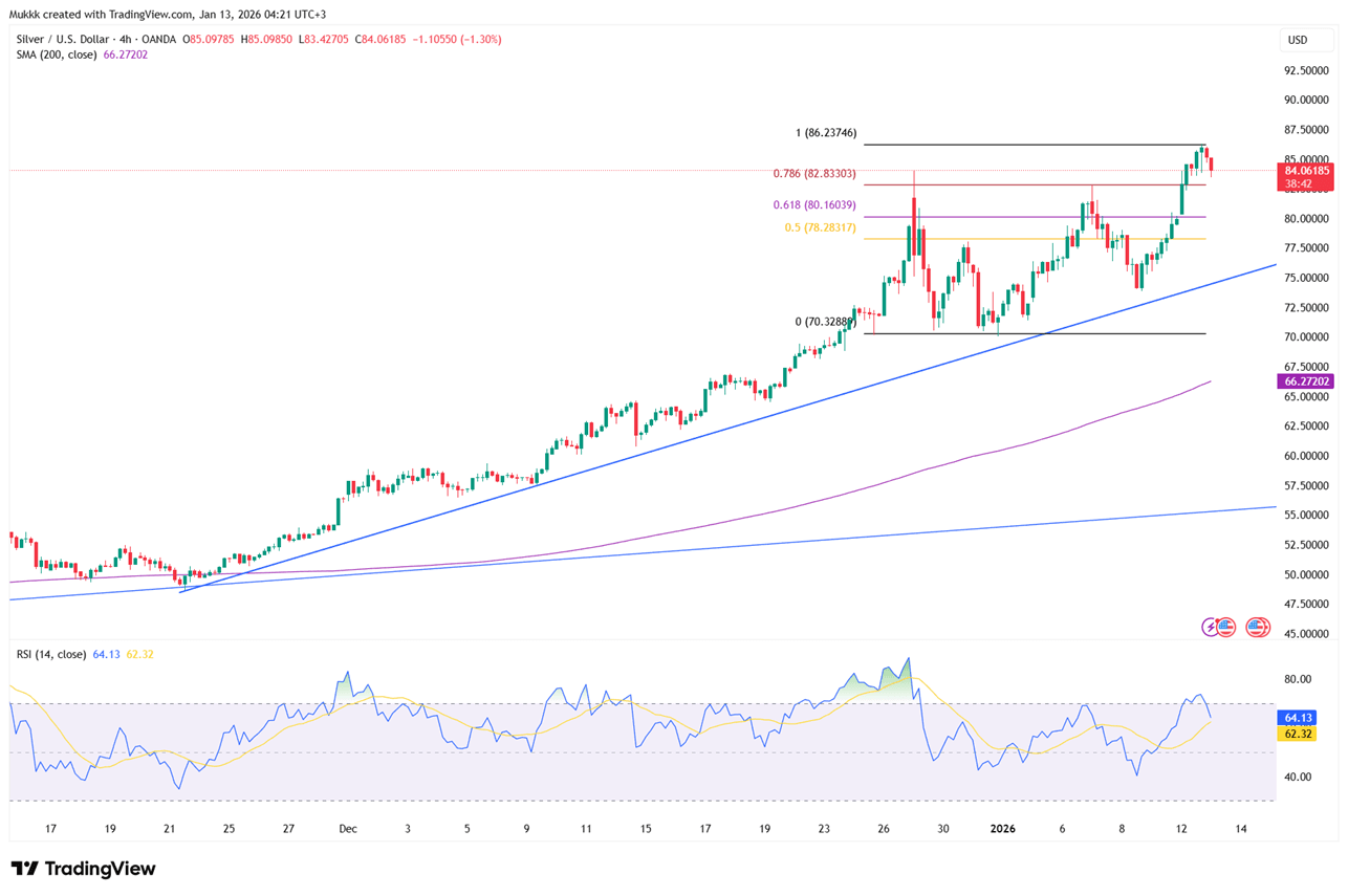 Silver prices held steady near $85 on Tuesday, consolidating after Monday’s record surge. Market sentiment remains cautious as investors digest a criminal investigation into Fed Chair Jerome Powell and ongoing, deadly unrest in Iran. These risks, coupled with speculation about potential U.S. intervention, continue to support silver's appeal as a vital safe-haven asset in a volatile landscape.