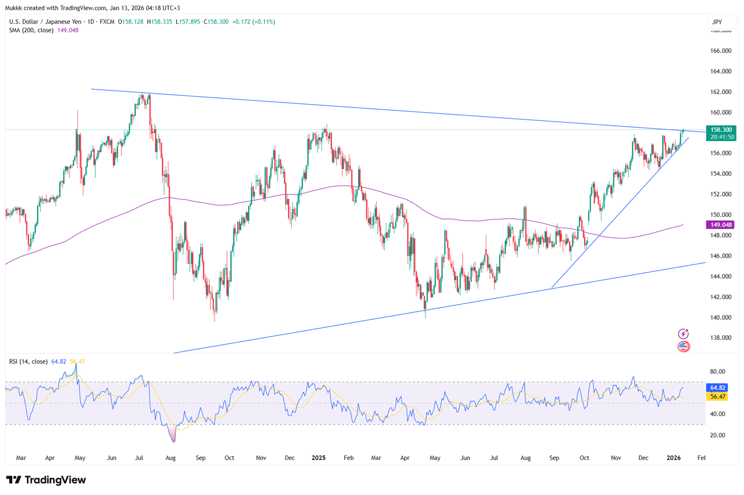 Technically, resistance stands near 158.90, while support is firm at 157.50.