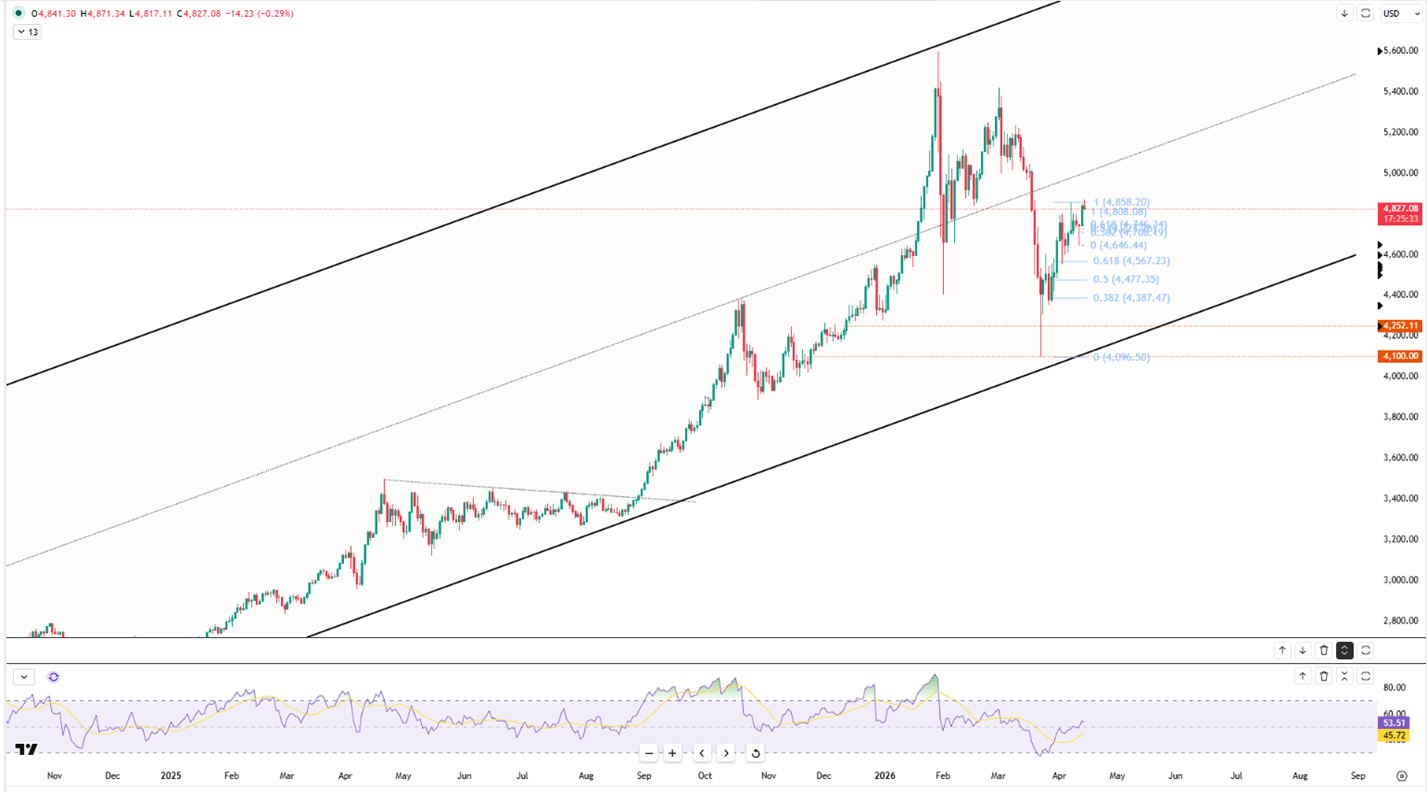 First resistance is seen at $4870, with initial support near $4800.