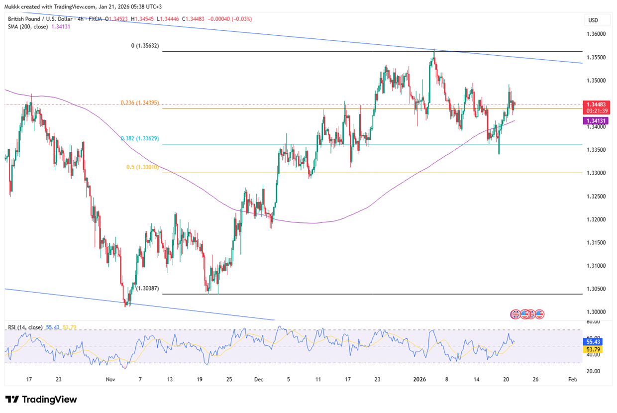 From a technical view, support stands near 1.3400, with resistance around 1.3480.