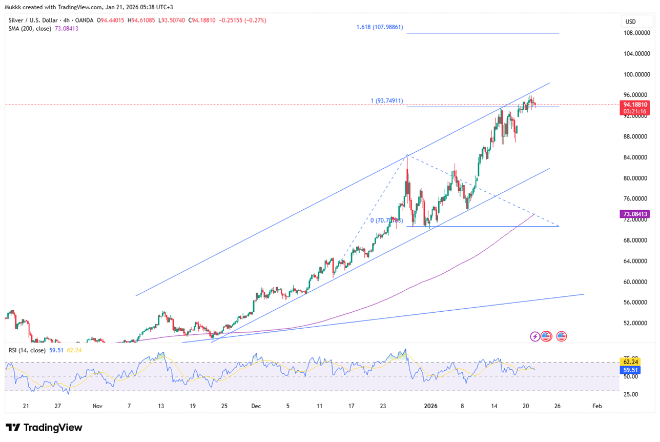 Silver opened near record highs of $95 on Wednesday, sustained by safe-haven demand as the U.S.–EU standoff intensified. President Trump signaled "no turning back" on his Greenland acquisition plans, prompting the European Parliament to halt a major U.S. trade deal. While these geopolitical rifts support silver, gains are limited by a resilient U.S. labor market, which has led traders to push back expectations for potential Federal Reserve rate cuts.