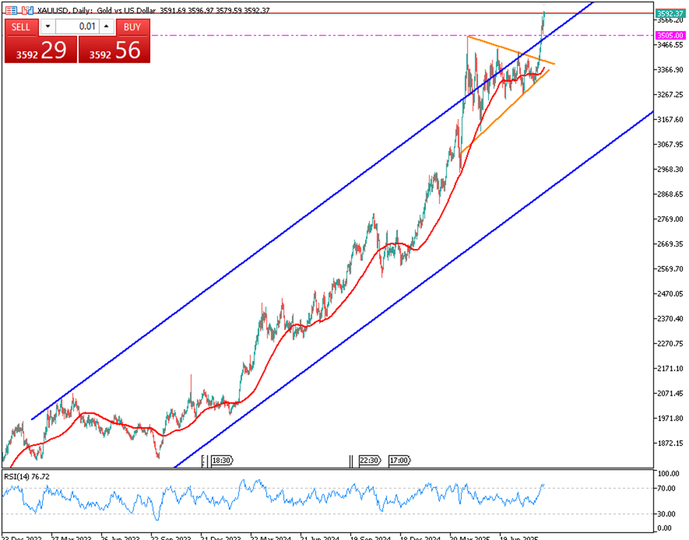 Gold is currently facing resistance around $3,600, with strong support near $3,570