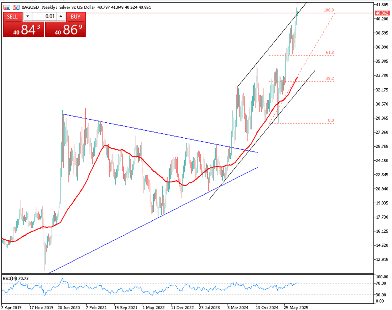 Silver traded lower near $40.65 in early Asia, pulling back from a 14-year high as markets digested Fed easing bets. Following a weak NFP showing just 22,000 jobs added in August and downward July revisions, traders now expect three 25 bps cuts this year, weighing on the dollar and supporting silver. Meanwhile, President Trump said European leaders will soon meet to discuss Ukraine, expressing cautious optimism over a settlement.